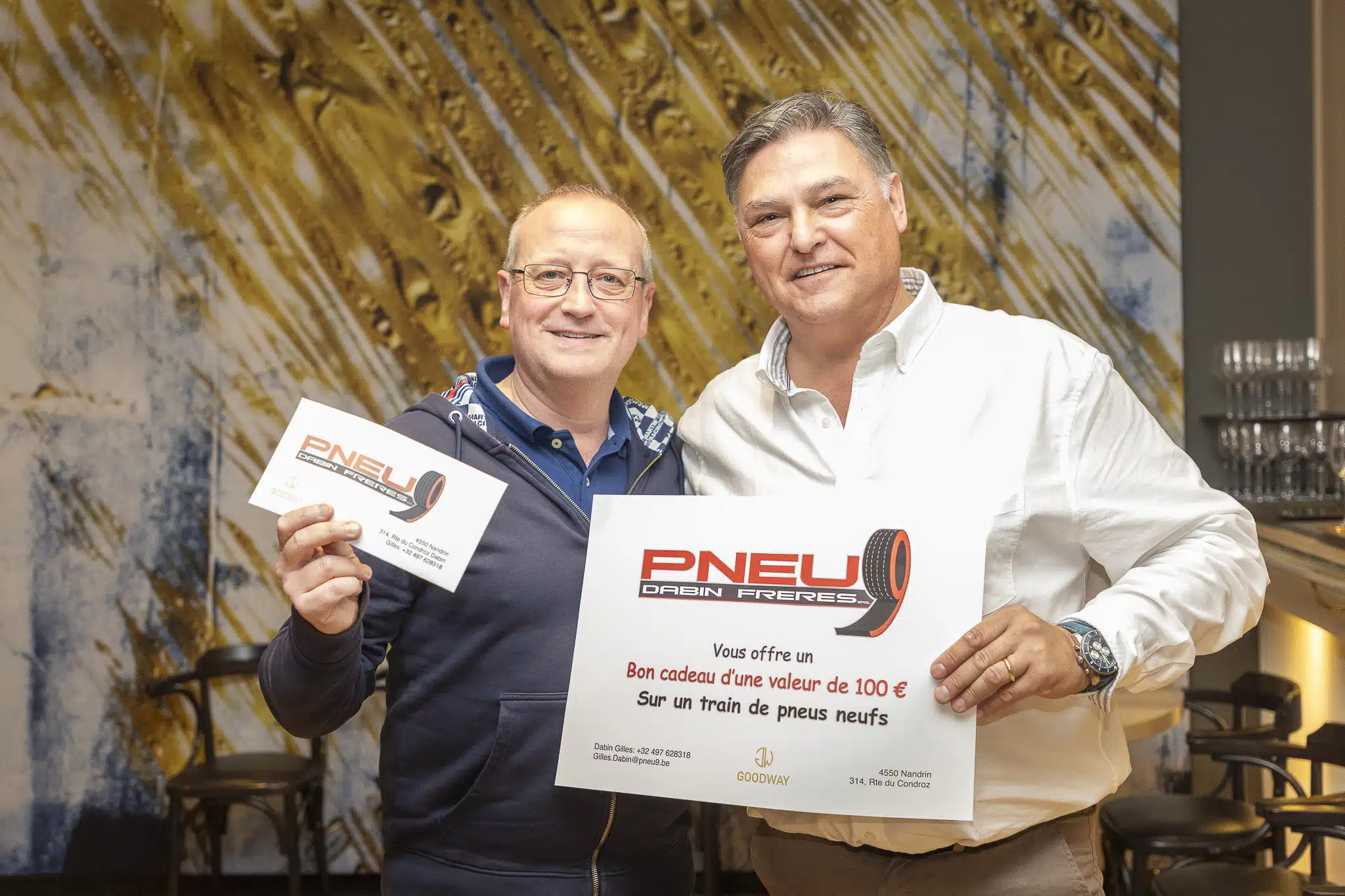 Le troisième, reçoit un bon cadeau d’une valeur de 100 € sur un train de pneus neufs offert par les établissements Pneu9 Dabins Frères à Nandrin.